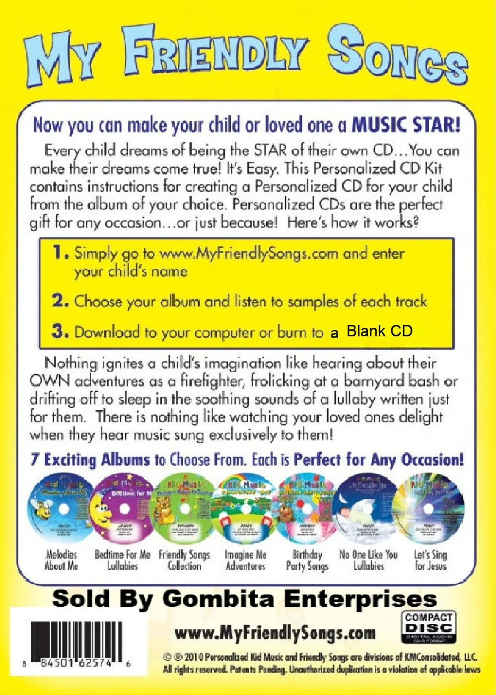 Now make your child or loved one an instant KID MUSIC STAR with the My Friendly Songs Personalized CD Kit!